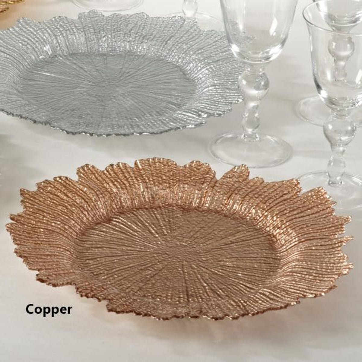 Flower Design Glass Charger Cooper